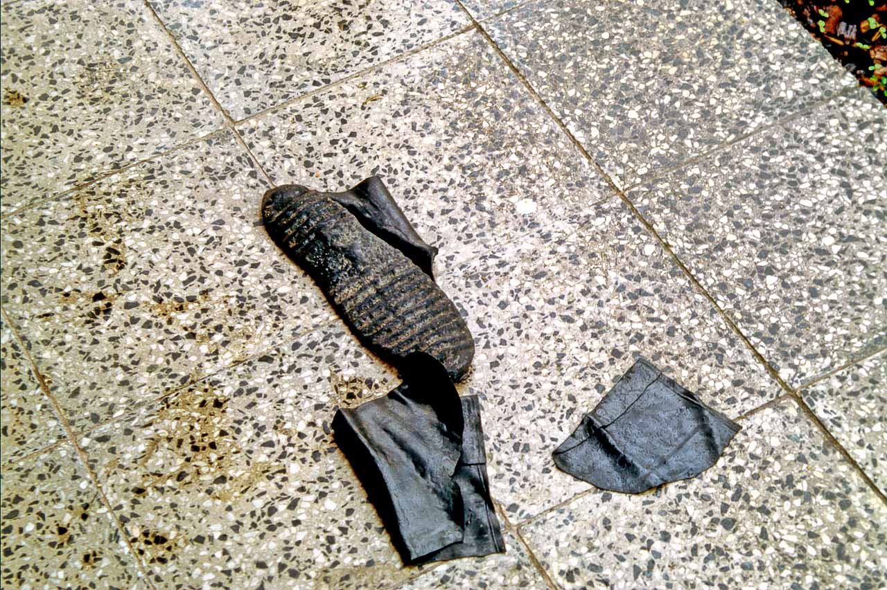 Reste eines Regenschuhes